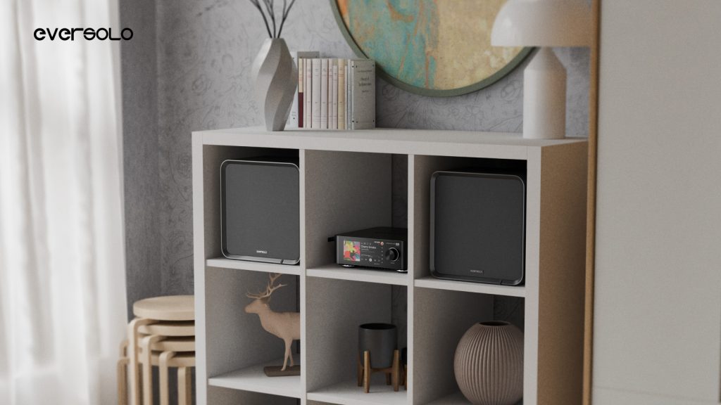 值得一提的是,SE100在场景适配上也展现了较高的灵活性。它不仅能够精准结像并重塑听音空间,更在物理形态上恰到好处的适配宜家KALLAX(卡莱克)搁架单元。这种“模块化”的融合思维,让高品质声学器材不再是家居装修中的突兀存在,而是能和谐融入书斋、客厅或桌面的艺术品。